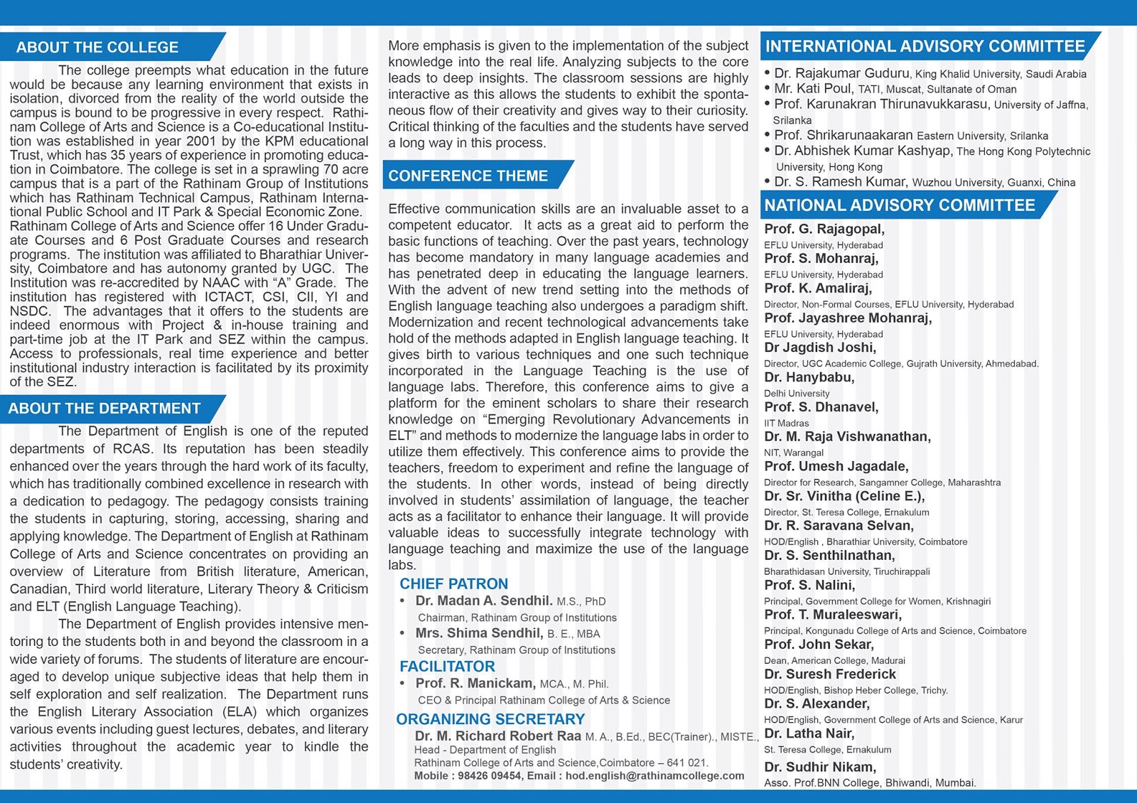 A Two Day International Conference on Emerging Revolutionary Advancements in ELT (ERA-ELT) February 2017